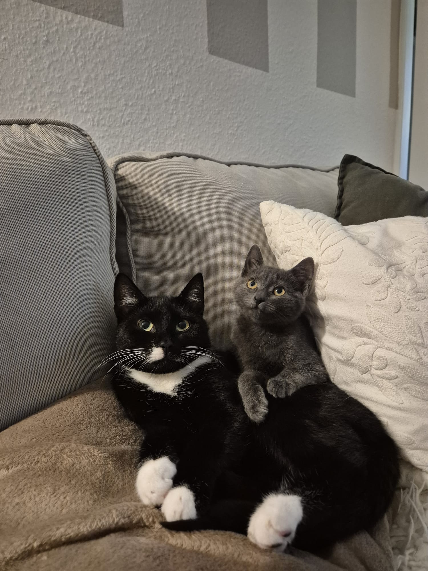 Mucki is sehr verträglich mit anderen Katzen, nur Hunde passen nicht in seine Welt.