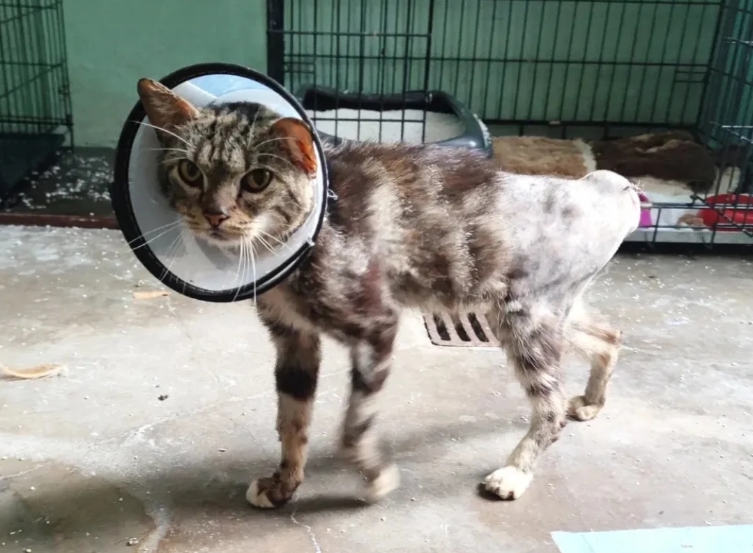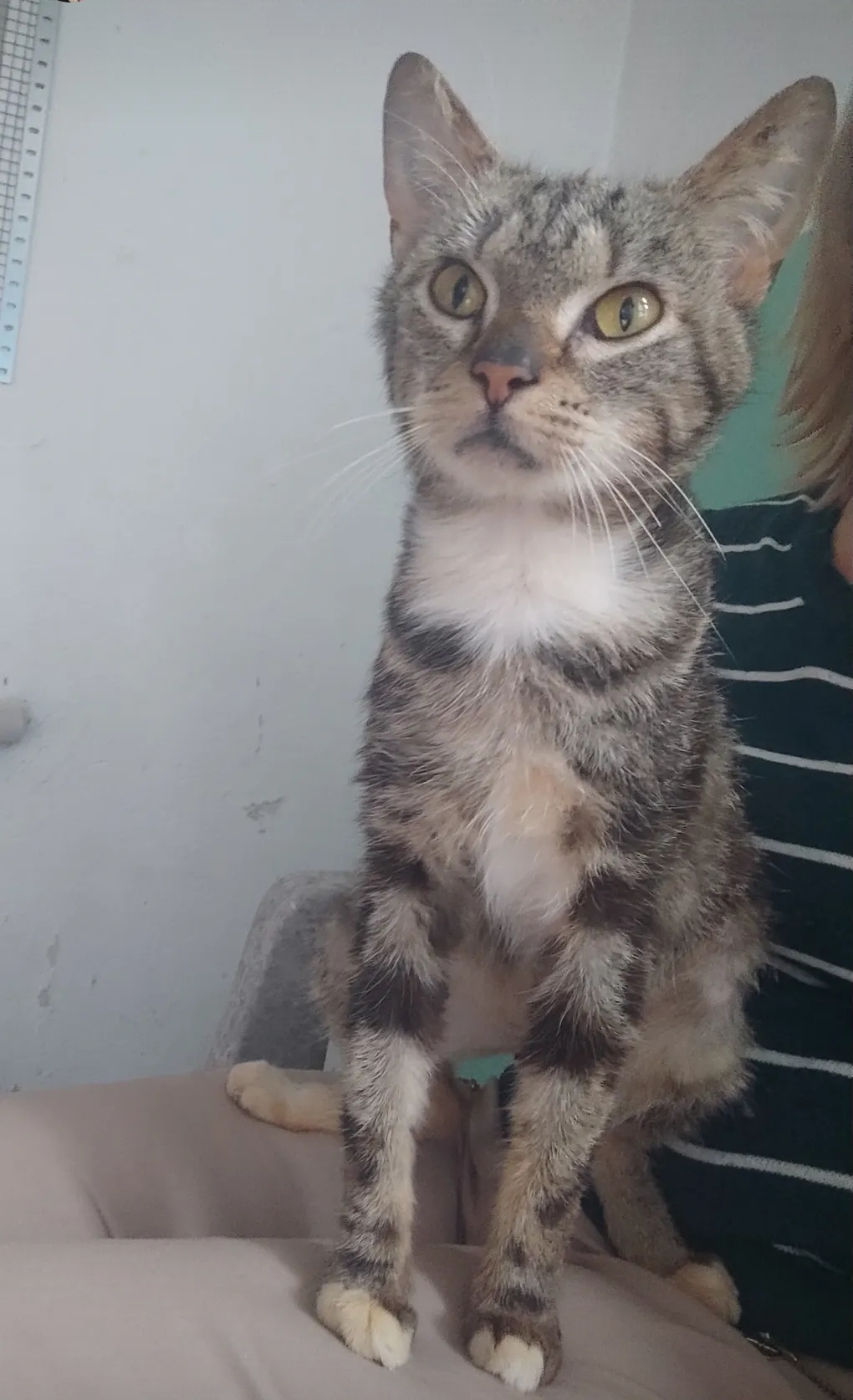 Die kleine Tina, die nach ihrer Finderin benannt worden ist, wurde in einem extrem schlechten Zustand gefunden, abgemagert und verletzt. Die Untersuchungen zeigten, dass die Rute amputiert werden muss. Tina hat die OP super gemeistert, zeigt sich geduldig und sehr tapfer.